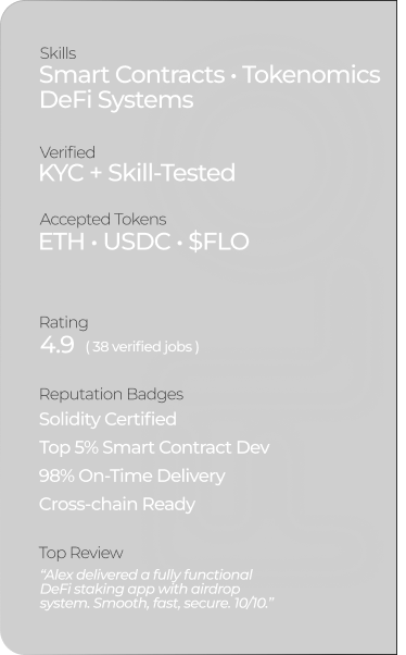 FLO gives you everything to deploy Web3 products and assemble verified teams — all in one place.